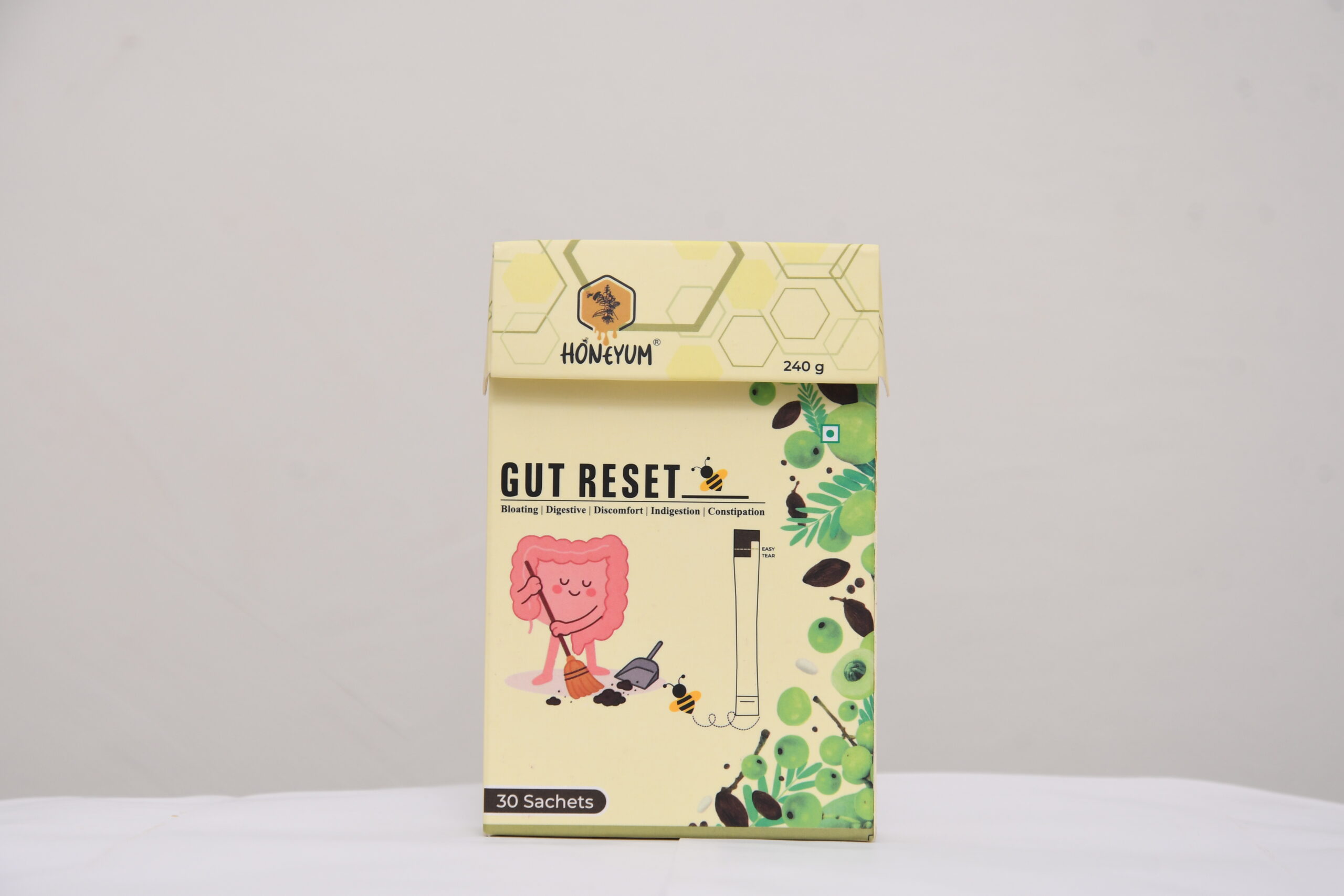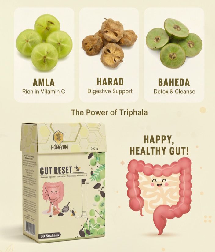 Say goodbye to constipation and indigestion with Honeyum Gut Reset, a natural blend of Amla, Harad,